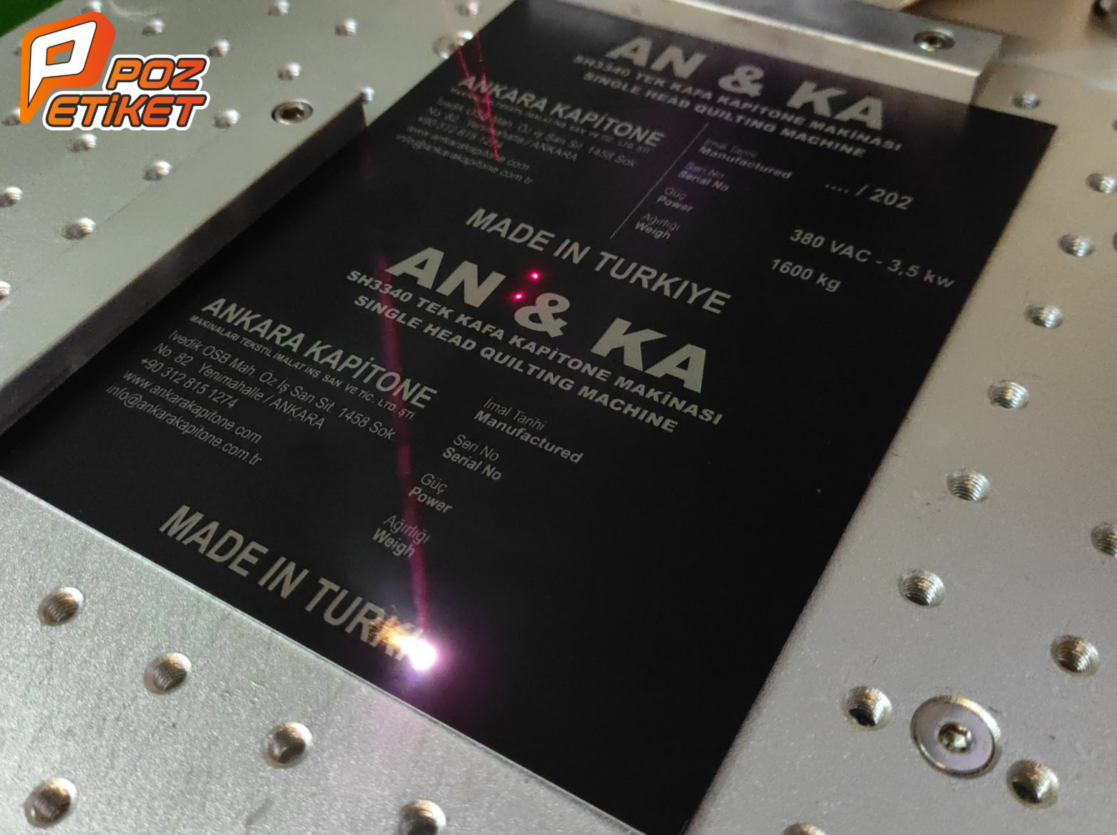 Ostim Lazer Kazıma sadece alüminyum ve eloksallı malzemelere değil, pirinç, paslanmaz çelik, ahşap, deri, promosyon ürünleri ve karton gibi birçok malzemeye uygulanabilir. Lazer kazımada en az miktar 1 adetten başlamakla birlikte, 1000’lerce adede kadar lazer kazıma etiket üretilebilir.